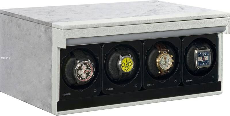 Специальный модуль для автоматического подзавода четырёх часовых механизмов с интегрированной подсветкой для сейфов Bordogna Brixia. Устанавливается на стандартную внутреннюю полку, подключается к внешнему электропитанию. Может быть изготовлен с автономным питанием. Изготавливается на заказ из кожи и алькантары высочайшего качества оттенков по выбору покупателя. Полностью ручная работа лучших мастеров, часы и механизмы для автоподзавода представлены исключительно в демонстрационных целях, в цену изделия не входят — стоимость по запросу.