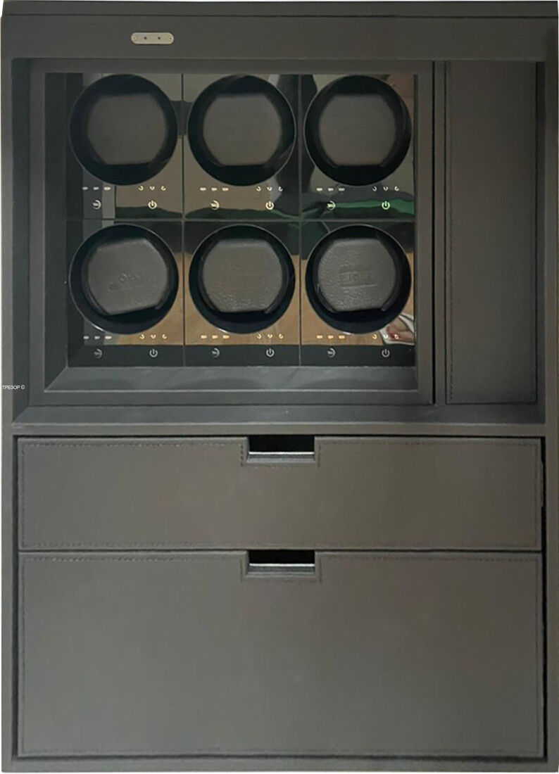 Модуль, содержащий 6 независимых механизмов для автоподзавода часов, с интегрированной подсветкой и ящиками для хранения ценных предметов, изначально был сконструирован для сейфа BRIXIA размера 3. Возможно его масштабирование фактически для всех размеров сейфов BRIXIA, кроме первого.
