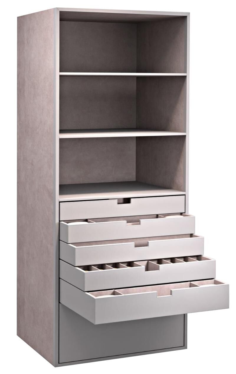 Полноразмерный индивидуальный интерьер для сейфов Brixia Uno / Brixia Tre размеров 5/6 и 7/8 для хранения ювелирных украшений, часов, коллекционных ручек, денег и документов.