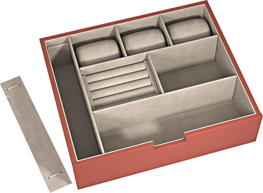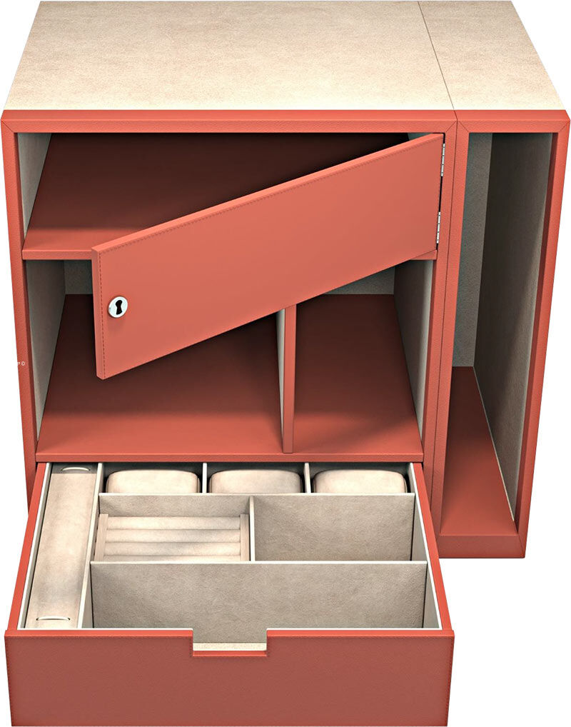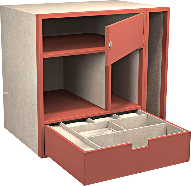 Идеально подходит для удобного хранения часов, украшений и наградного оружия: запираемый отсек, отделение с перегородкой, выдвигаемый ящик. Справа вертикальный отсек формата А4 для папки Корона.