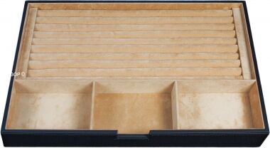 Ювелирная вставка представляет собой отдельный модуль, оснащённый выдвигаемыми лотками, каждый из которых разделён на индивидуальные секции, оптимизированные для размещения различных ювелирных украшений или часов.