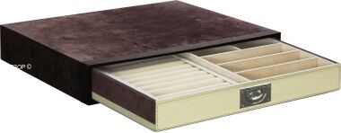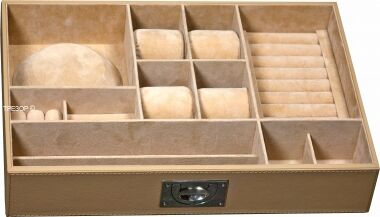 - Выдвижные ящики с лотками для хранения ювелирных украшений. Каждый лоток с заданной "раскладкой" может быть легко вынут из металлического подвижного каркаса (приобретается отдельно).