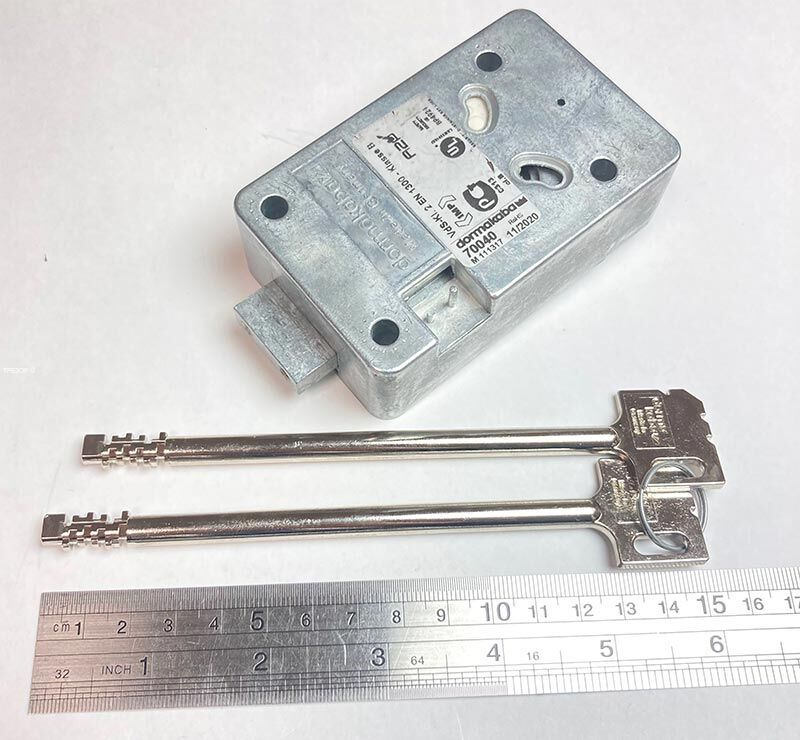 Перекодируемый ключевой замок Mauer Varos 70040 класса B в комплекте с 2 ключами длиной 135 мм и специальными крепёжными болтами. Устанавливается в качестве базового замка на сейфы и двери KASO с III до V класса взломостойкости. Возможность легко перекодировать этот замок позволяет минимизировать риски того, что кто-то сумел скопировать или сделать дубликат ключей. Достаточно просто купить другую пару ключей и прописать их в замок, предварительно "стерев" предыдущие.