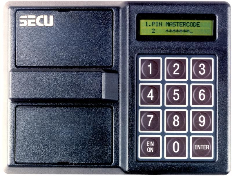 Версия электронного замка SECU E4000 с расширенным функционалом. Питание от 4-х щелочных элементов AA, располагающихся в двух независимых отсеках.