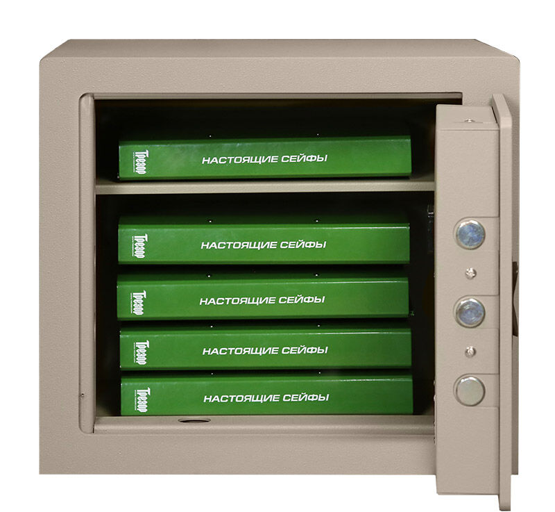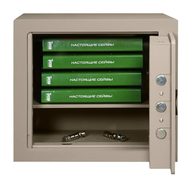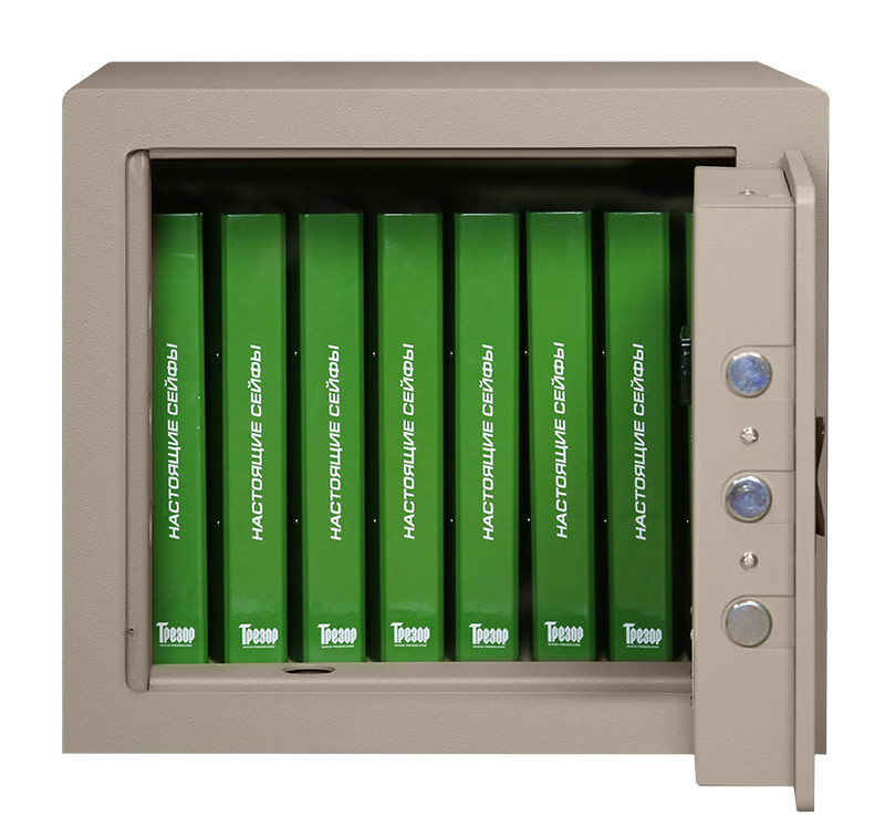 Модель сейфа Ares 67, в отличии от предыдущих размеров, позволяет хранить любые папки с документами как в горизонтальном, так и в вертикальном положении. Окрашен в RAL 1019.