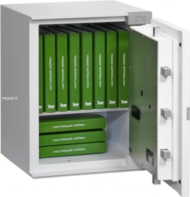 В базовой версии комплектуется одной полкой, что позволяет разместить вертикально полный ряд папок и ещё несколько положить горизонтально. Ознакомиться с возможными вариантами внутреннего оформления можно в специальном разделе сайта, посвящённом аксессуарам, а посмотреть буклет завода - в прикреплённых документах.