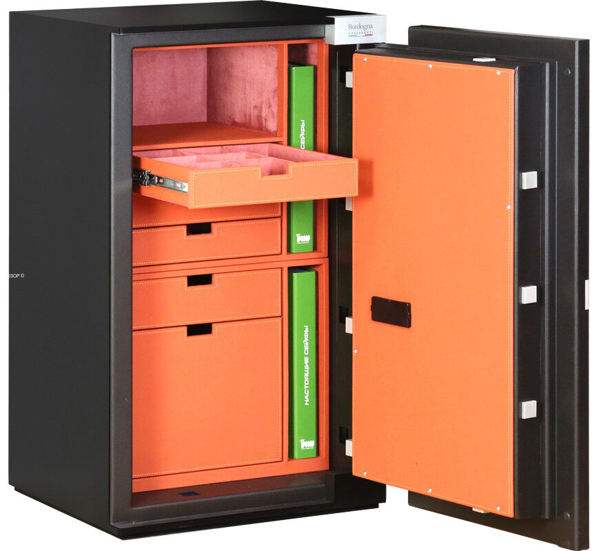 Bordogna Brixia 4 это воплощение безупречного итальянского стиля в сочетании с непревзойдённой защитой от взлома. Первый в истории сейфостроения и единственный до сих пор сейф, от начала до конца сконструированный не для банка или офиса, а для обычного человека. При минимальных размерах по ширине и глубине это самая высокая модель, основание которой всего 490 на 430 мм. Следующие размеры (5 и 6) занимают чуть больше места на полу. Это модель оптимального размера для установки в гардеробной комнате.