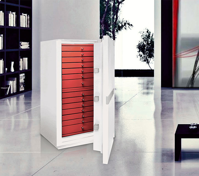 Элегантный и удобный во всех отношениях сейф имеет небольшой вес, всего 220 кг (как у трех человек, стоящих рядом), и полезный объем 179 литров. Выпускается в белом матовом шероховатом окрасе, а стильные алюминиевые элементы, привет от футуристов 30х годов, идеально вписываются в концепцию “сейф будущего”. Если нужна более высокая защита Ваших ценностей, все тоже самое, но в более мощном исполнении Вы найдете в серии BRIXIA TRE со страховым покрытием до 400 тыс евро — оригинальная брошюра на обе серии BRIXIA в прикреплённых файлах.