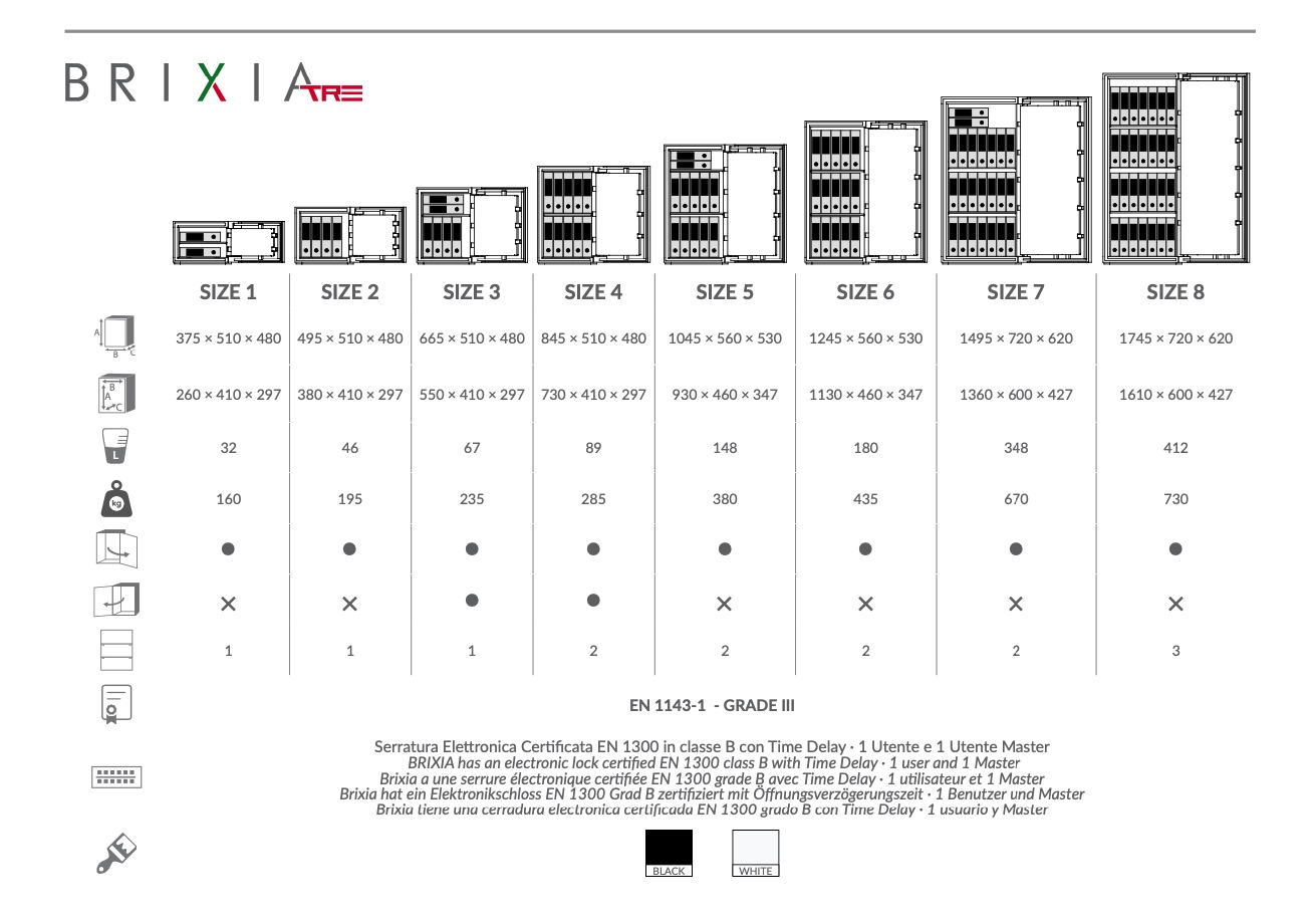 Концептуально революционный сейф BRIXIA от Bordogna, создателя королевских сейфов zero3zero. Воплощение безупречного итальянского стиля в сочетании с непревзойдённой защитой от взлома. После феноменального успеха семейства BRIXIA UNO, выполненного в первом классе взломостойкости встречайте продолжение в классе 3!