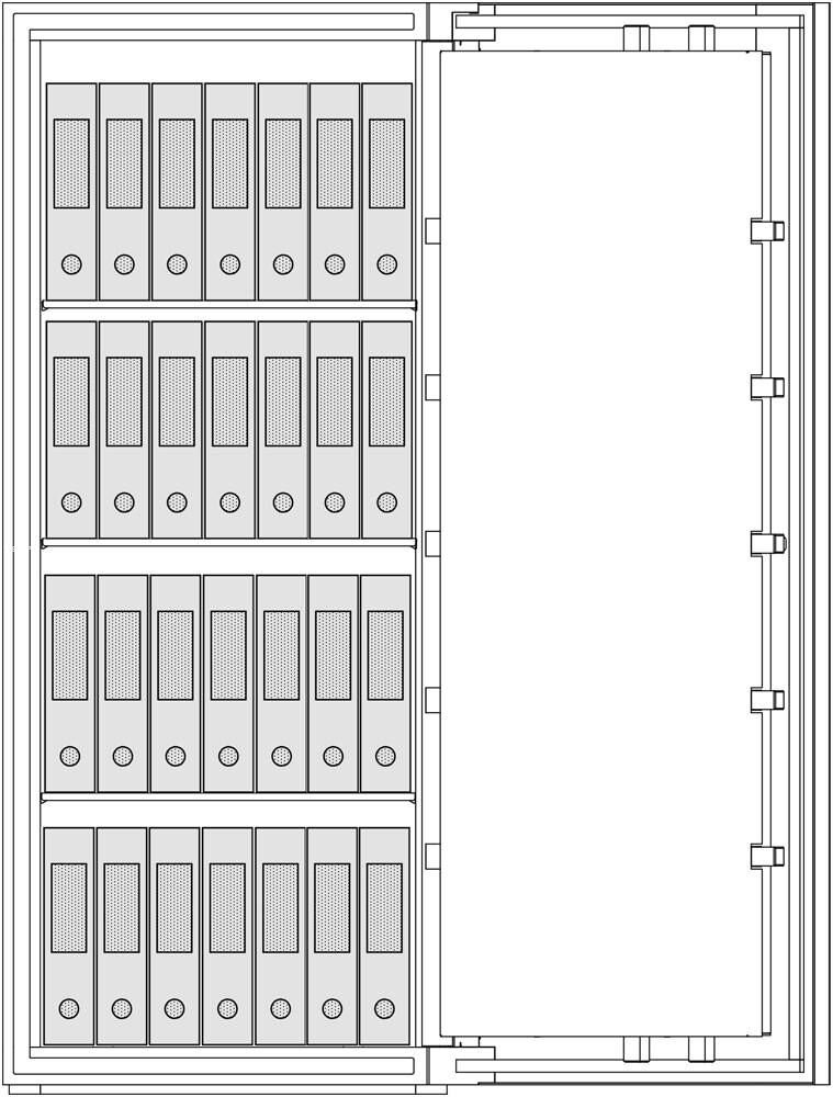 Концептуально новый размер серии BRIXIA TRE с сертифицированной защитой от взлома — полезный объем более 400 литров! Brixia TRE 8 — самый большой сейф семейства, за счёт этого он позволяет реализовать внутри все желания хозяина: рассчитан на хранение 4х рядов папок типа Корона или массива часов с автоподзаводом, а также коллекционного оружия или ценностей любой направленности.