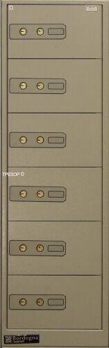 Две стойки, скреплённые и поставленные друг на друга, образуют стандартную стойку банковского депозитного хранилища. Установленные рядом умещаются под стойкой ресепшн. Монтируются внутри взломостойких шкафов или сейфов Bordogna.