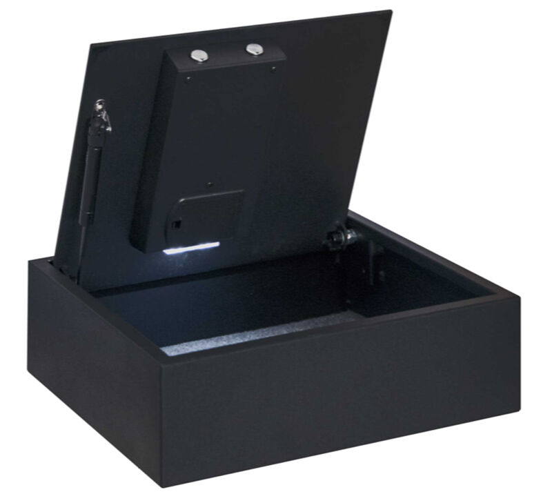 Модель сейфа Bordogna Open Top, будучи закреплена в выдвигаемом ящике домашней мебели, вполне подходит для хранения короткоствольного оружия.