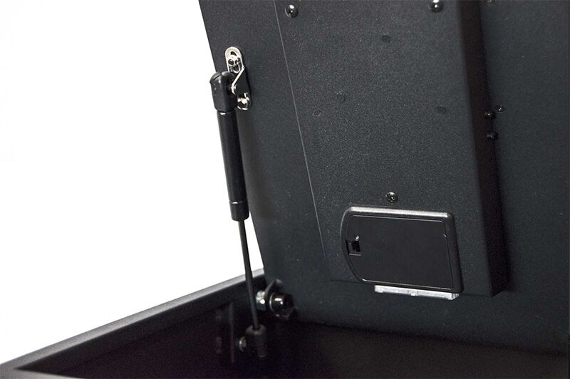 Вмещает ноутбук с дисплеем до 14". Моторизованный замок с упрощённым алгоритмом, даёт возможность использовать код от 4 до 6 цифр длиной. Для нужд специфических задач отдельно может быть приобретён управляющий контроллер, позволяющий использовать систему "мастер код" для аварийного открывания и считывать из замка протокол последних 100 событий.