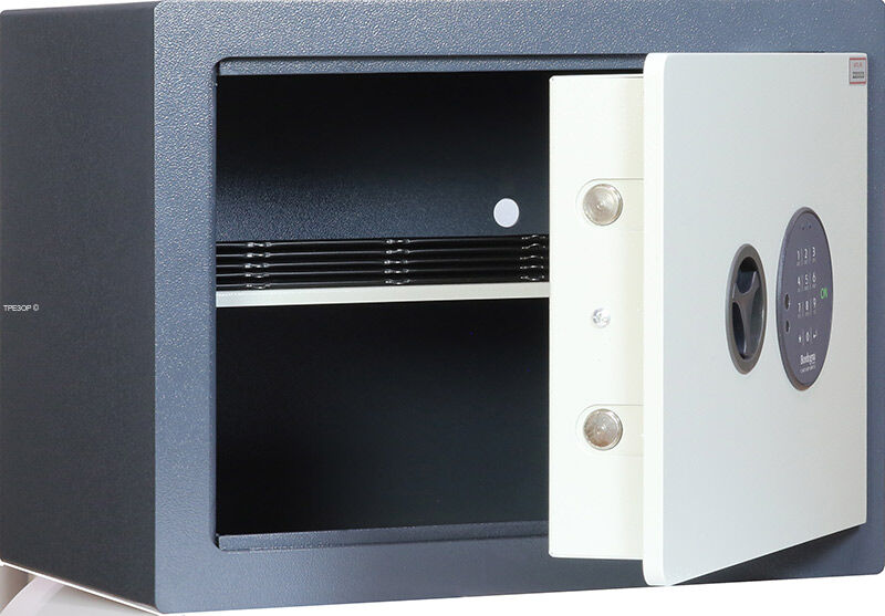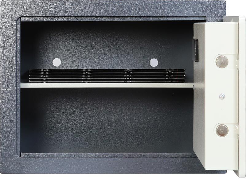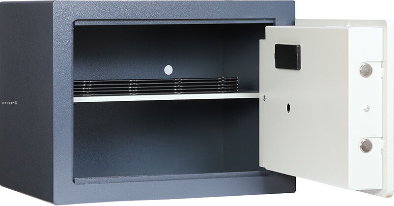 Варианты окраски: дверь и корпус - белый матовый RAL 9016 или классическое исполнение темно-серый корпус RAL 7016 / светло-серая дверь RAL 7038. Люксовая версия комплектуется разборным интерьером с передвигаемой полкой изготовленным из искусственной замши итальянского производства.