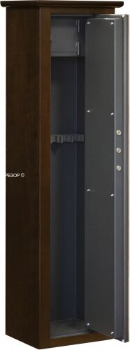 Оружейный сейф Bordogna Argos 500 облицован шпоном красного дерева. Вмещает 6 длинноствольных ружей и оборудован запираемым отделением.