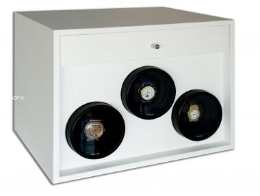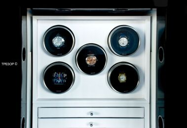 Эксклюзивный сейф для часов. Три внутренних модуля, отделанные натуральной износоустойчивой кожей, позволяют разместить до 15 непрерывно подзаводимых хронометров. Любой из модулей может быть заменён на специальные отсеки для ювелирных украшений.