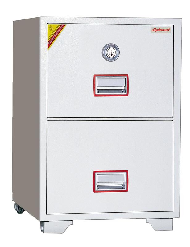 Файловый сейф (картотека) модель DFC 2000 с двумя выдвигаемыми ящиками, для хранения документов в подвесных папках, огнестойкость 60 минут. Запирание на 1 ключевой замок. Нижний ящик может блокироваться верхним.