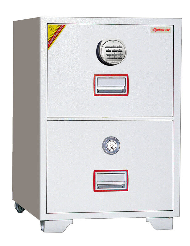 Двухящичный картотечный (файловый) огнестойкий сейф под документы А4 Diplomat DFC 2000EK с электронным замком на верхнем ящике и ключевым на нижнем