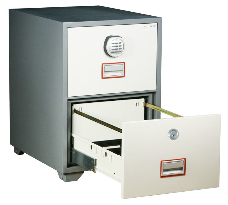 Картотечный огнестойкий сейф Diplomat DFC 2000 LEK с электронным замком на верхнем ящике и ключевом на нижнем