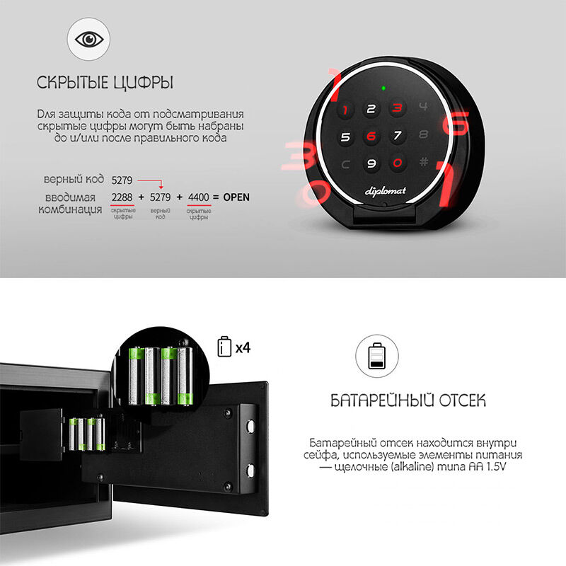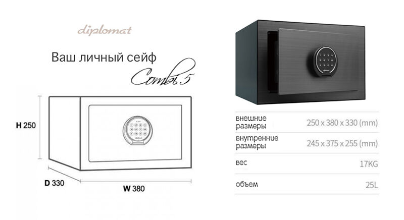 Описание: Компактный личный сейф Diplomat Combi 5 "Чёрный титан"