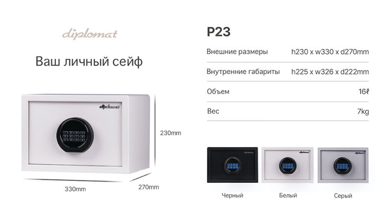 Модель P23 умещается везде и уместен повсюду! Отличный сейф для дома, офиса и гостиницы.