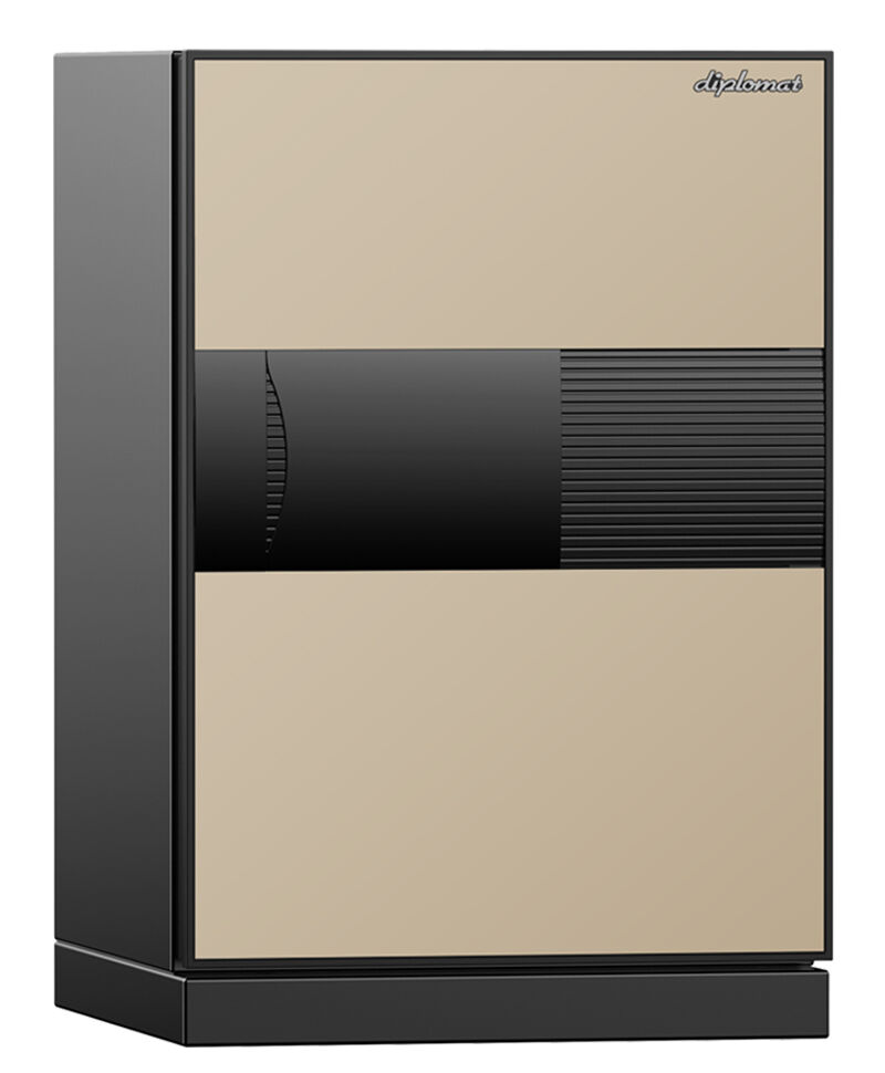 Новинка 2024 года: универсальные сейфы от пожара и взлома премиум серии Diplomat NEXT Plus с комбинированной панелью двери бежево-песочных оттенков.