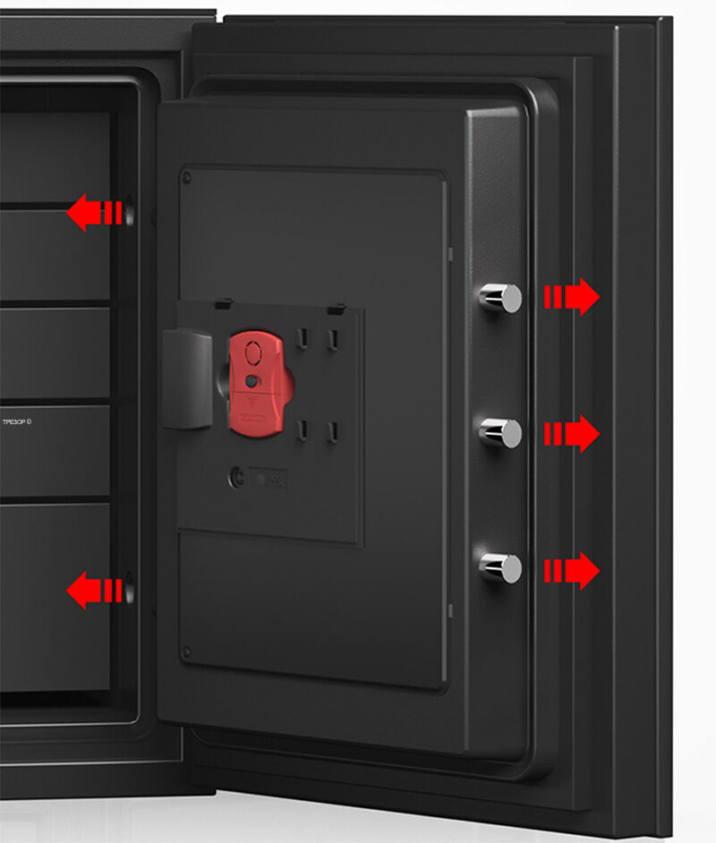 - усиленная ригельная система (3 активных ригеля диаметром 22 мм и 3 пассивных со стороны петель)
