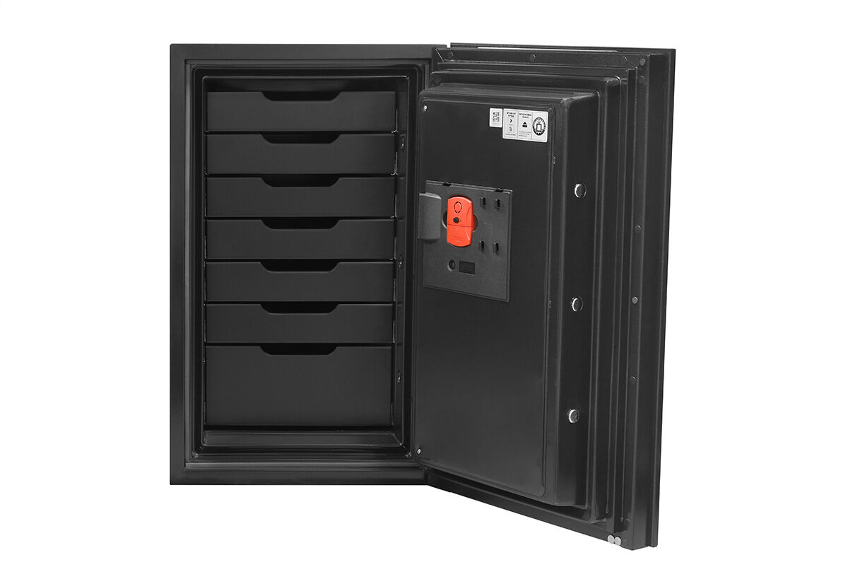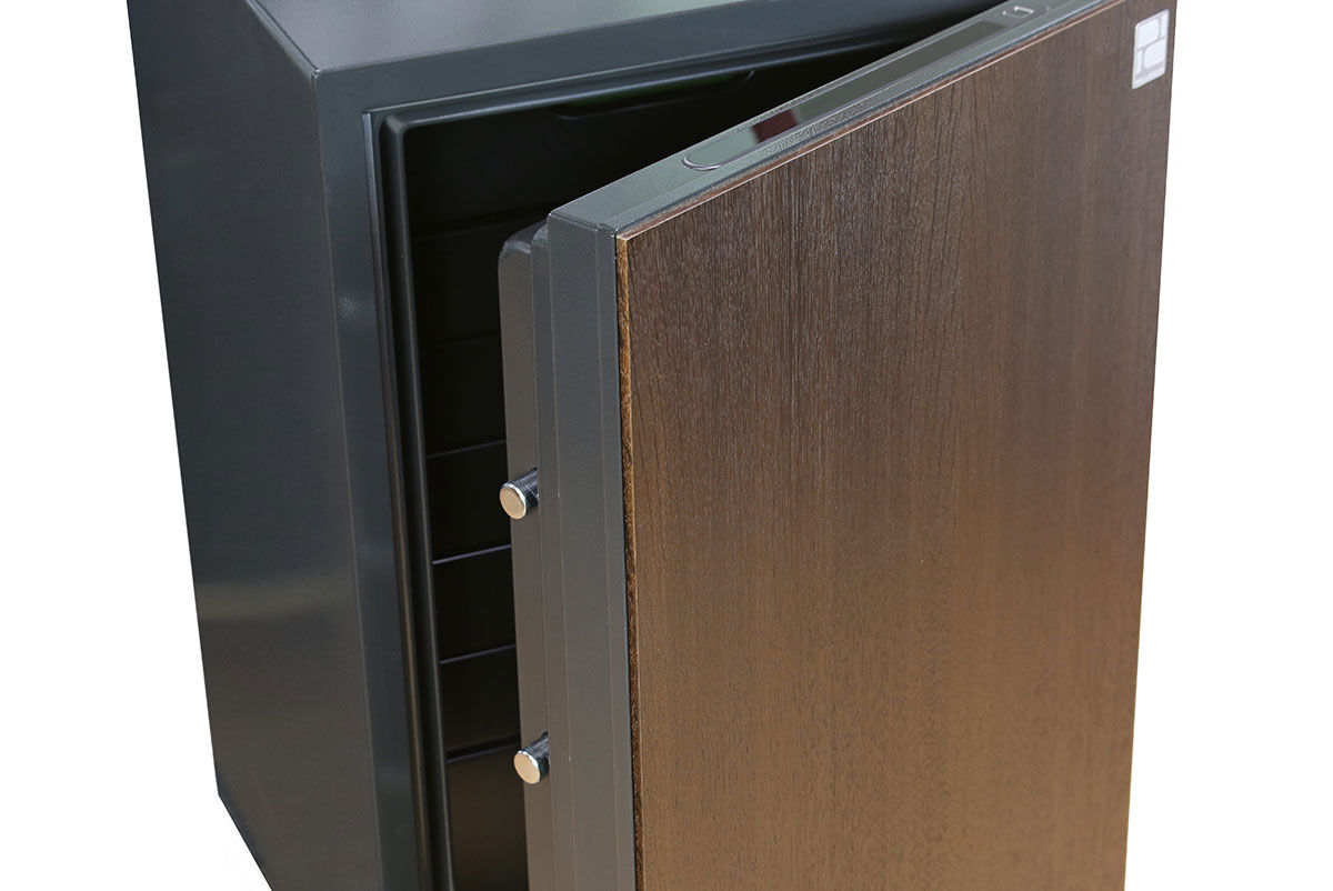 Эргономичный сейф от огня и взлома с деревянной плоской панелью и биометрией.