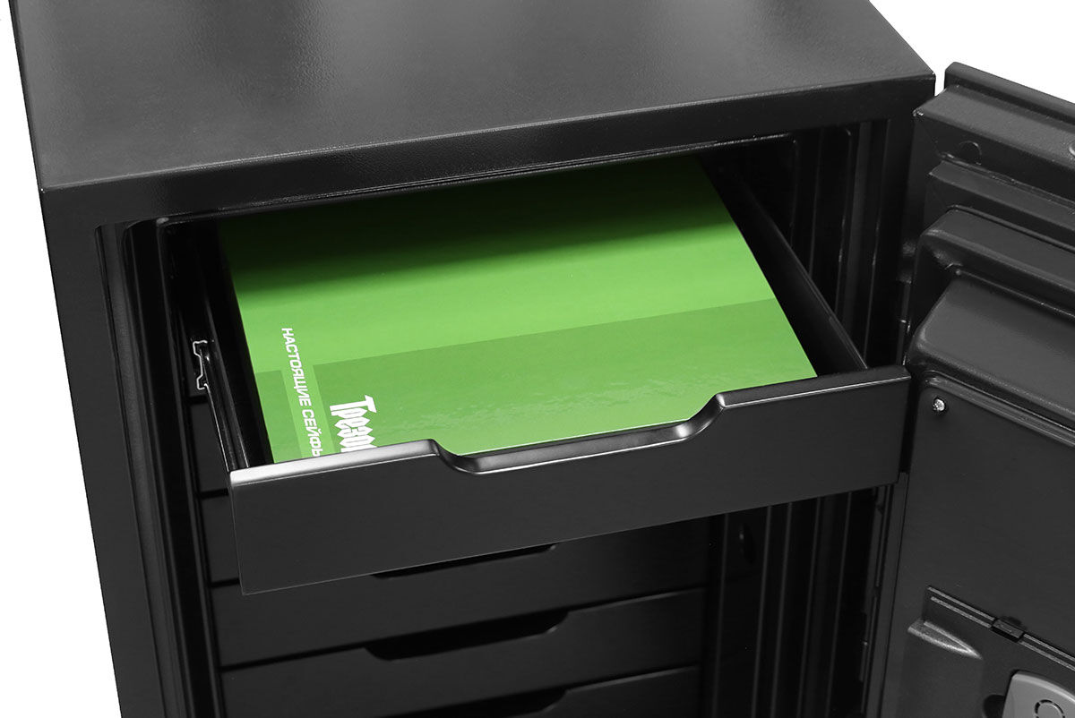 Огневзломостойкий сейф премиальной серии Palladium Gold модели 900 Smoked White Oak (тонированный шпон дерева) обладает не только безупречной внешностью, но и внушительным внутренним наполнением: