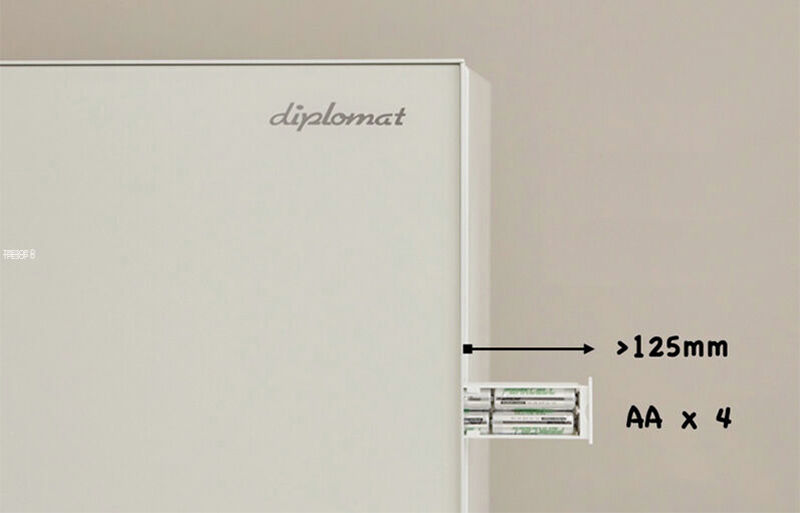 Батарейный отсек находится справа на двери. При установке сейфа необходимо оставить 12 см по правой стене.
