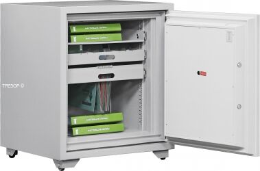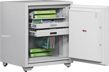 Теперь работа с надёжно защищёнными от огня документами станет намного более комфортной. Уже не надо нырять вглубь сейфа за далеко запавшей папкой и метаться от сейфа для папок к сейфу для подвесных файлов, перебегая затем к картотечному сейфу с трудовыми книжками и после кланяться сейфу для магнитных носителей. Серия Diplomat PDH - всё необходимое в одном флаконе!