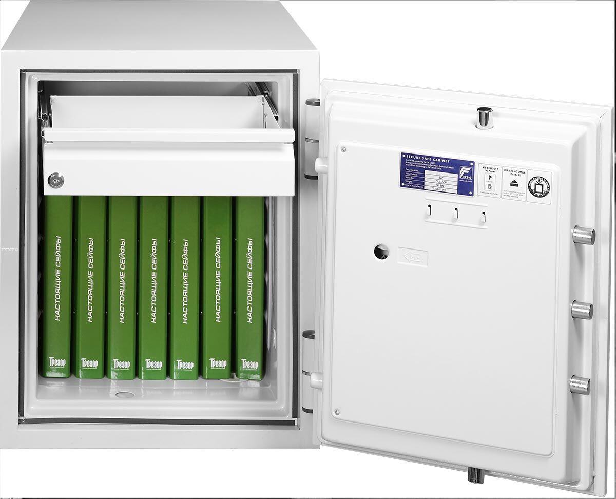 В настоящее время существует два норматива, классифицирующих защиту содержимого сейфов от огня. Сохранность бумаги обеспечивается изделиями с классами 60P, 90P и 120P (P - от paper, то есть бумага). Для защиты информационных носителей (оптических и магнитных дисков, фото- и стриммерных лент и флеш-носителей) требования стандарта существенно отличаются. Эти классы обозначаются 60D, 120D, 60DIS и 120DIS (D - это "дата", а "DIS" - это "диски", требования для последних самые жёсткие).