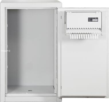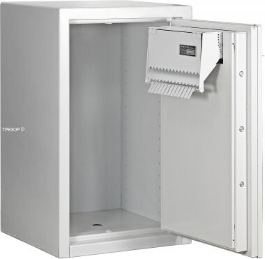Любая конфигурация замков: ключевые или электронные, до двух замков в любой комбинации. Система анкерного крепления к полу защищает сейф от нежелательного перемещения. Возможно левое направление открывания двери.