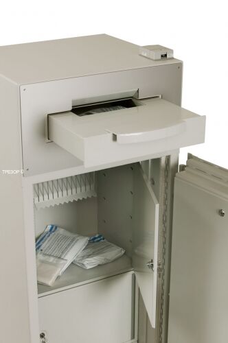 Стандартно подготовлен для крепления к полу. Максимальный размер депозитируемого пакета: 45 мм (В) Х 235 мм (Ш) Х 155 мм (Г).