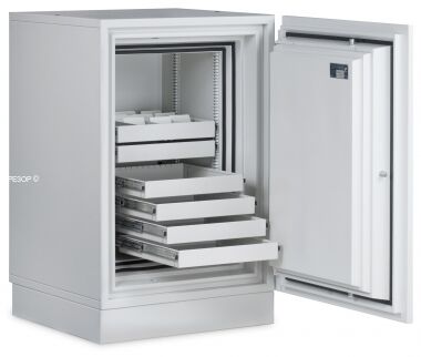 Сейф KASO DS 4300 предназначен для хранения электронных носителей информации. Вмещает до 495 компакт-дисков, 435 LTO или 2185 DDS картриджей. Сейф оснащен выдвигающимися ящиками с разделителями для всех типов носителей данных. Цена за пустой сейф или за другую комплектацию по запросу.