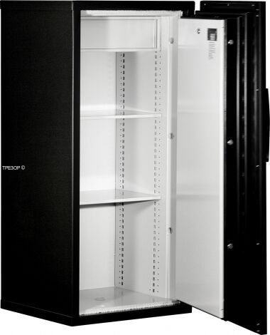 Для запирания оснащается перепрограммируемым ключевым замком или надёжным вандалостойким электронным замком, по уровню безопасности существенно превышающим требования стандарта по классу сейфа и допущенным к установке на сейфы класса 5. Крепится к полу и, при предварительным заказе, дополнительно - к стене. Версия-эконом без декоративной панели - модель PTK E1-330 Для корректного планирования установки сейфа в Вашем помещении скачайте полные габаритные размеры.
