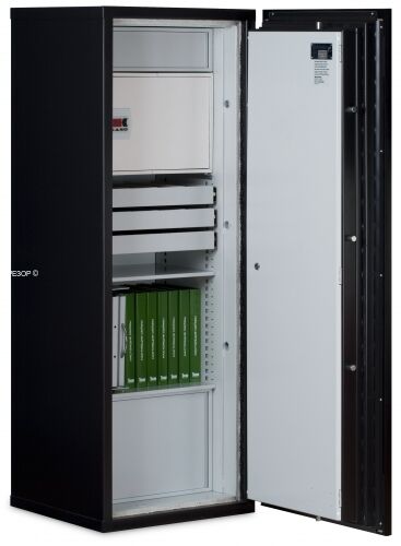 Высочайший уровень безопасности обеспечивается перекодируемым ключевым замком (что актуально для офиса) или превосходящим на класс требования стандарта сверхнадёжным электронным замком. Сейф с той же защитой, но дешевле — это серия KASO PTK Е-300 — без панели PTK E2-340.
