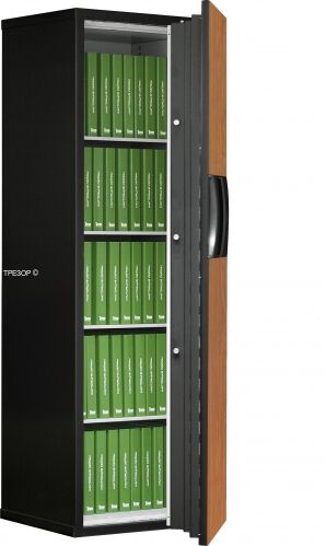 Что делать, если у Вас очень мало места, а нужен очень вместительный сейф от огня и взлома? Ответ один - это KASO E2-350 с декоративной панелью цвета "вишня". Занимая на полу существенно меньше половины квадратного метра, в него уместится невероятно много. Например около 50 папок с документами или около 20 выдвигаемых картотечных лотков, в которых уместится невероятно количество монет, медалей, украшений или прозаических карточек, трудовых книжек, паспортов и тому подобного. Всё защищено как от взлома (по 2-му европейскому классу, в Германии страховка покроет до двухсот тысяч евро) так и от пожара (60 минут сертифированной по NT FIRE 017 огнестойкости). Если же добавить специальный внутренний дата-бокс , то будет уже можно хранить разнообразные носители информации или особо чувствительные к температуре и влажности ценности.
