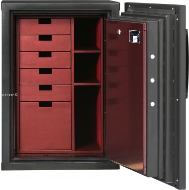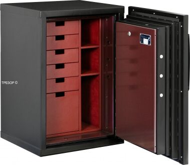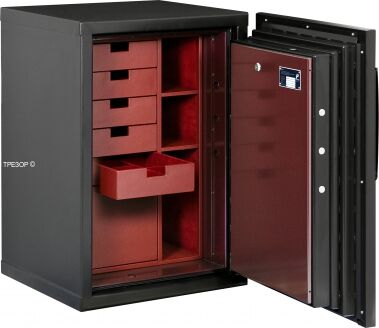 Отличный сейф для ценностей и документов: 3-й европейский класс взломостойкости гарантирует противостояние самому серьёзному инструменту в руках профессионального взломщика, плюс полная 60-минутная огнестойкость, так же сертифицированная по европейскому нормативу. Производится финским заводом KASO OY, расположенным в черте г.Хельсинки, при этом этот завод - единственный во всей Скандинавии. Декоративные панели под дерево или окрашенные в любой цвет как в матовом, так и в глянцевом исполнении по RAL (данная модель представлена в черном цвете), позволяют ему вписаться в любой интерьер. При этом на полу сейф занимает места не больше, чем обычная стиральная машина, то есть легко уместится среди мебели.