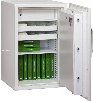 Сейф для хранение личных ценностей и документов, а также для профессионального пользования, KASO E3-320 White вмещает 2 полных ряда папок формата A4 (типа “Корона”), стандартно оснащён запираемым отделением высотой 150 мм. Серьёзная защита от взлома - 3й класс по европейскому стандарту дополнена 60-минутной огнестойкостью для бумаги, что гарантирует полную сохранность Ваших ценностей при любом катаклизме. При установке внутрь сертифицированного дата-бокса сейф сохранит особо чувствительные носители информации вплоть до нежных фотоплёнок и стриммерных лент. Стандартно сейф оснащается масштабируемой электронной системой запирания, которую можно, при заказе в производстве дополнительного оборудования, подключить ко внешней системе сигнализации.