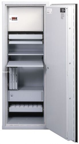 Универсальный сейф от взлома и пожара — KASO E3-350 Grey: сверхкомпактный - на полу он занимает площадь всего 60 х 60 (см), высотой чуть меньше 2х метров, он уместится в любой комнате, а внутренний полезный объём больше 300 литров. При этом каждый литр объема используется максимально эффективно за счёт грамотной организации внутреннего пространства. В дополнение или вместо стандартных полок доступны выдвигаемые ящики, разнообразные модули для хранения ключей, запираемые отделения высотой 15 см или 35 см и даже специальный модуль для хранения особо чувствительных фото-видео или дата носителей. Всё это надёжно защищено от любого катаклизма — сейф успешно прошел испытания и сертифицирован на защиту от огня в течение часа и на защиту от взлома в соответствии с требованиями класса 3 евростандарта, что делает его идеально подходящим для установки в загородном доме.