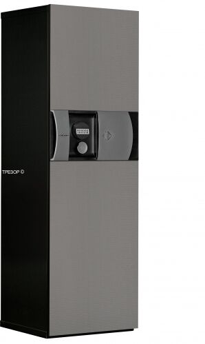 Сейф KASO E3-350 третьего класса взломостойкости, огнестойкость 60 минут, размерность 350. С серой декоративной панелью и чёрным корпусом.