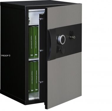 Сейф KASO E4-320 четвёртого класса взломостойкости, огнестойкость 30 минут, размерность 320. Серая декоративная панель идеально сочетается с чёрным корпусом.