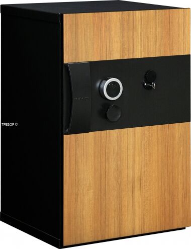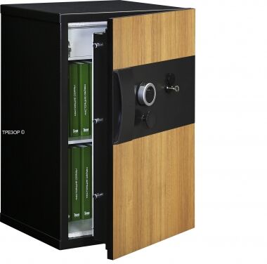 Сейф KASO E4-320 четвёртого класса взломостойкости, огнестойкость 30 минут, размерность 320. "Мальдивский тик" - декоративная панель и корпус чёрного цвета.