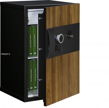Сейф KASO E4-320 четвёртого класса взломостойкости, огнестойкость 30 минут, размерность 320. Чёрный корпус и декоративная панель "дуб".