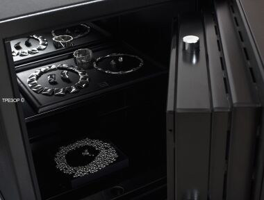 В стандартную комплектацию входит: декоративная панель Smoky Brown Pear (дымчатая груша - темно-серая); электронный замок последнего поколения; металлическая панель (шторка); окраска в матовый черный или белый. Дополнительно может быть укомплектован специальными скрытыми отсеками, стеклянными полками, выдвигаемыми ящиками для ювелирных украшений. Подробно про возможности нового семейства можно прочитать у нас в отдельной статье на сайте.