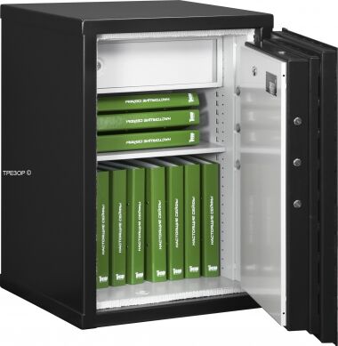 Сейф KASO PTK E2-309 с электронным замком и окрашенным в чёрный цвет корпусом. Стандратный набор внутренних аксессуаров: запираемое отделение и одна полка