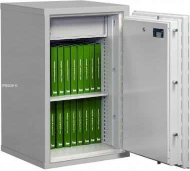 Сейф KASO E2-320 с ключевым замком, стандартного серого цвета RAL 7035. Взломостойкость класс II, огнестойкость 60P.