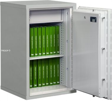 Сейф KASO E2-320E стандартного серого цвета RAL 7035 с электронным замком. Взломостойкость класс II, огнестойкость 60P.