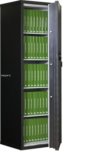 Сейф оснащен полками расчитанными на хранение документов в папках A4 (количеством до 45 штук) и запираемым ящиком высотой 15 см.